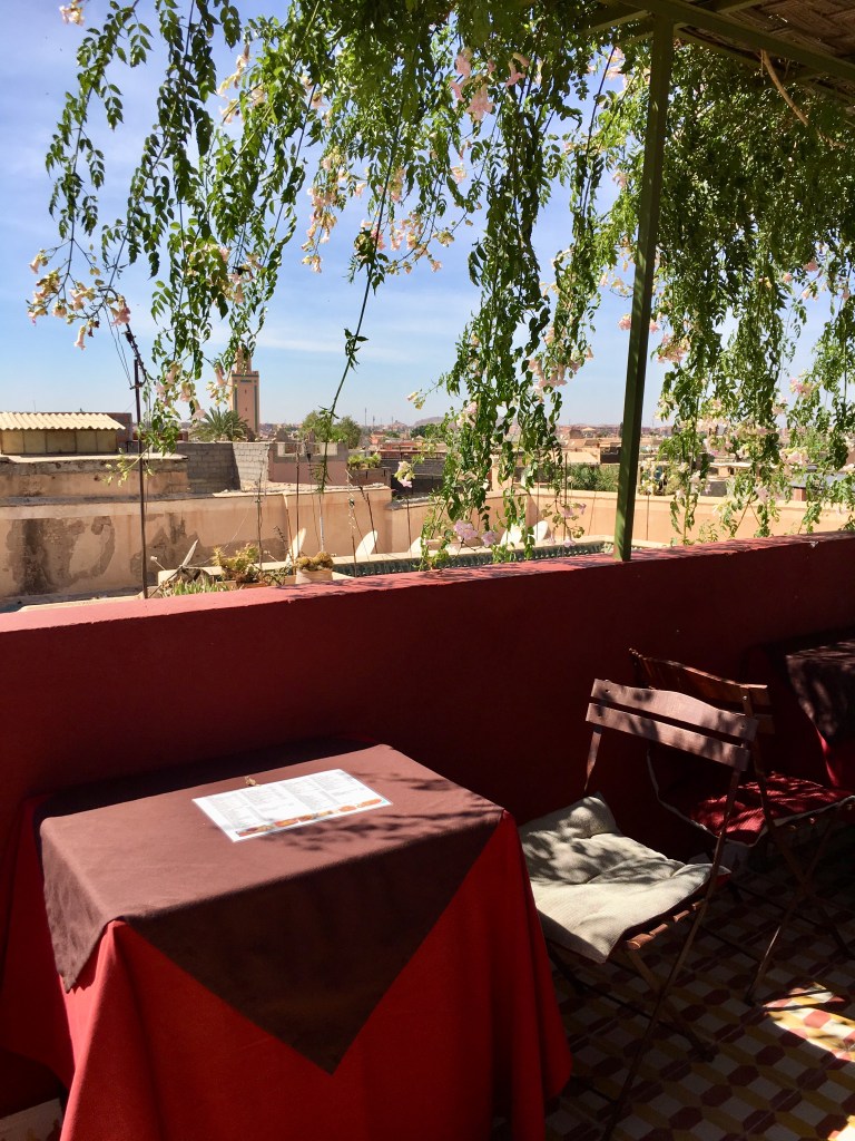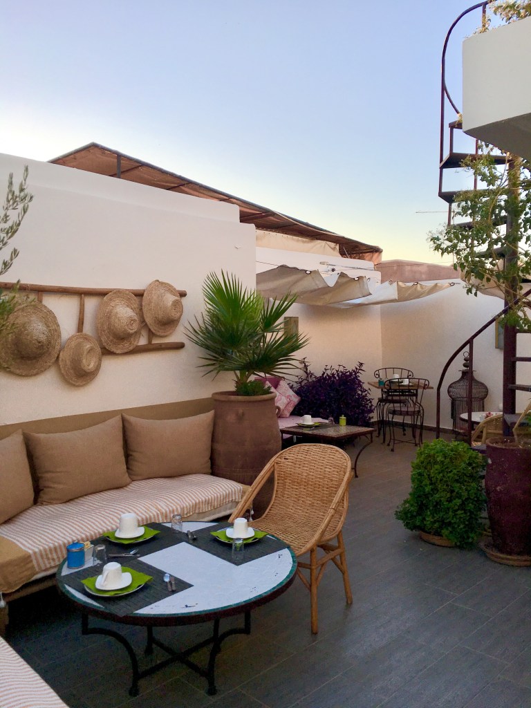 Nachdem du am Vortag angekommen bist, frühstückst du erst mal entspannt in deinem Riad auf der Dachterrasse. Ich kann dir das Riad Safina wärmstens empfehlen. Die Besitzer sind zwei Franzosen, Patrice und Marilyn, daher besuchen französischsprachige Gäste besonders gern diese Unterkunft. Grundlegende Sprachkenntnisse in Französisch schaden nicht, aber du kannst dich auch auf Englisch grob verständigen.